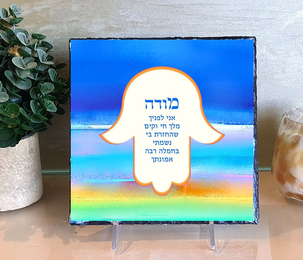 This lovely piece includes candle-lighting blessings for Shabbat and Yomtov, including Shehecheyanu. While enhancing your candle-lighting experience it will also infuse colour into your home. Matching trays for candles are in 4 sizes available (See TRAYS).